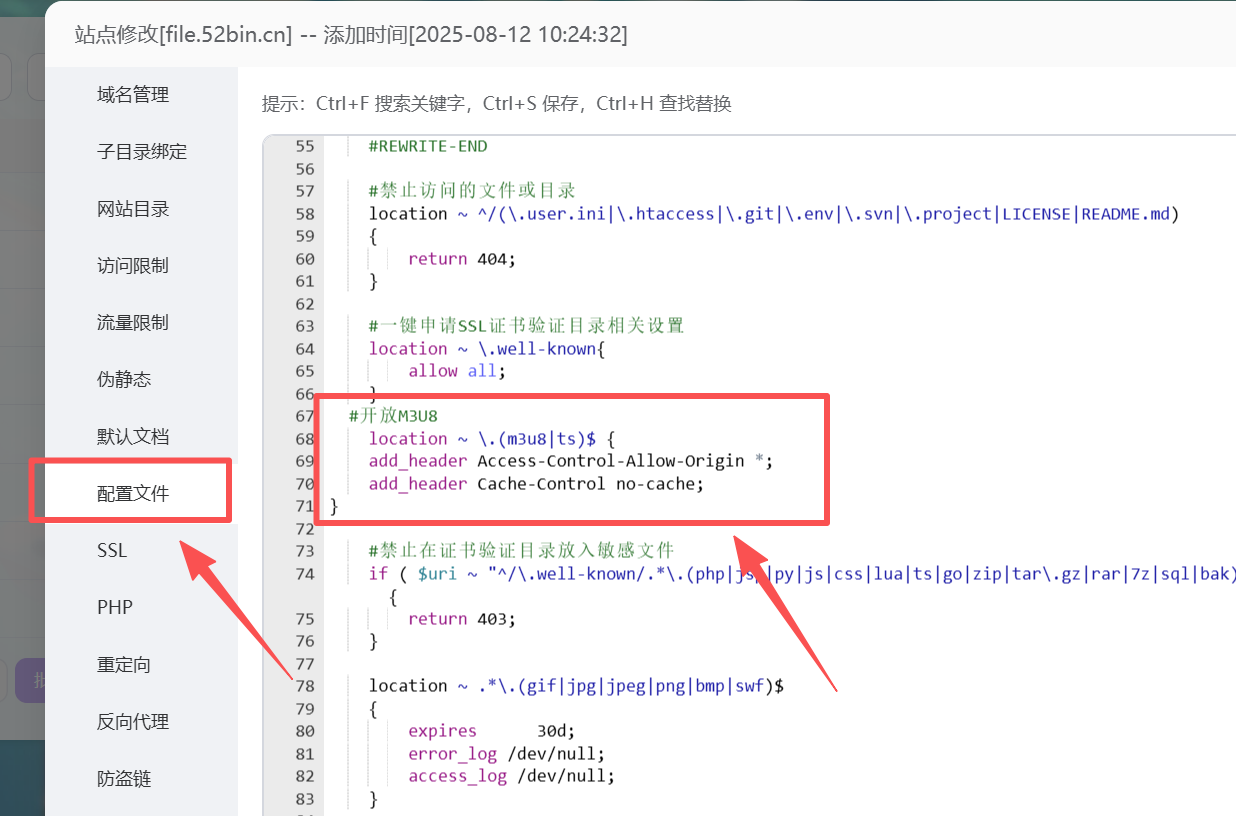 location ~ \.(m3u8|ts)$ {
